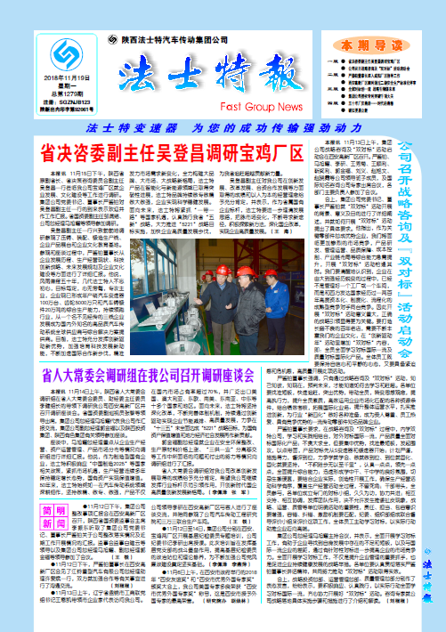 點擊量:5386●11月12日下午,集團公司整改事項匯報會在西安高新廠區召開,陜西省國資委監事會主席李振東聽取了集團公司黨委書記、董事長嚴鑒鉑關于公司整改落實情況及近期工作開展情況的匯